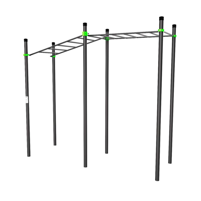 Два типа рукоходов в одном комплексе: горизонтальный и с подъёмом. Такое сочетание расширяет тренировочные возможности и помогает прорабатывать мышцы под разными углами нагрузки. Отлично подходит для интенсивных воркаут-тренировок на силу и координацию.