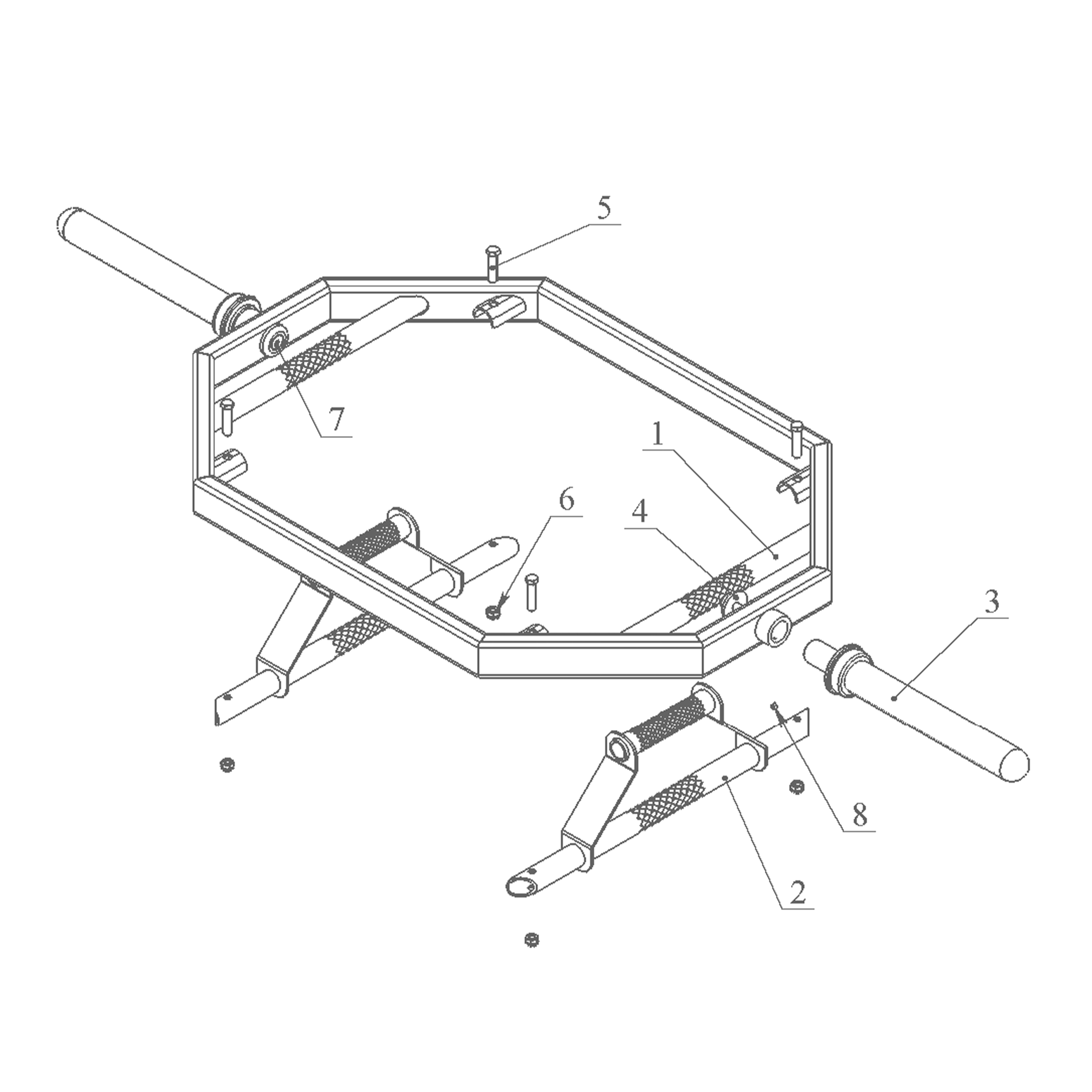Трэп-гриф (ещё гриф называют trap bar / hex bar / ромбовидный гриф или просто шестиугольник) – снаряд для эффективного выполнения становой тяги. В отличие от гантелей или гирь, трэп-гриф более стабилен, а значит позволяет работать с большими весами и лучше развить силу хвата и мышц корпуса. Гриф предназначен для выполнения различных упражнений: жим лёжа, тягу к груди в наклоне, сплит-приседания на одной ноге, проходку фермера и другие (на что хватит опыта). Но все же главное упражнение – классическая становая тяга. При выполнении становой тяги основную нагрузку получают квадрицепсы и ягодицы. Стабилизируют тело разгибатели спины, ромбовидные, лопаточные мышцы, а также трапеция. Косвенно прорабатываются брюшная мускулатура и предплечья. При работе с грифом существенно снижается нагрузка на поясницу: вес распределяется равномерно, удобные рукоятки с вариативностью хвата обеспечивают естественную амплитуду движения.